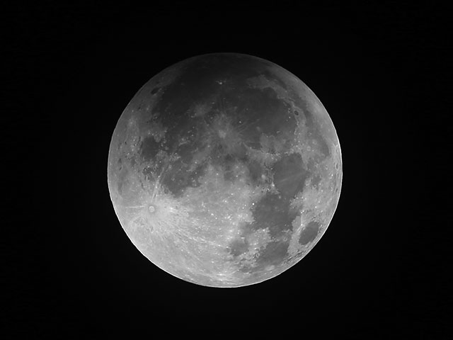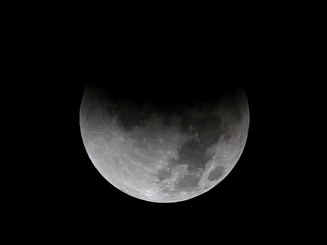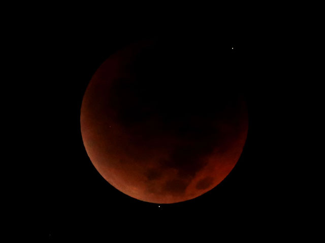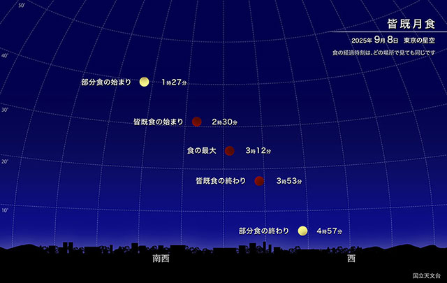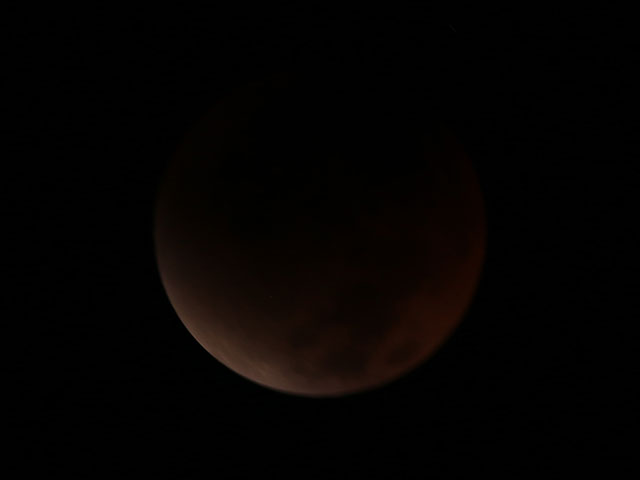 皆既月食中の月は,露出を調整すると赤銅色(しゃくどういろ)に輝いて見えます。